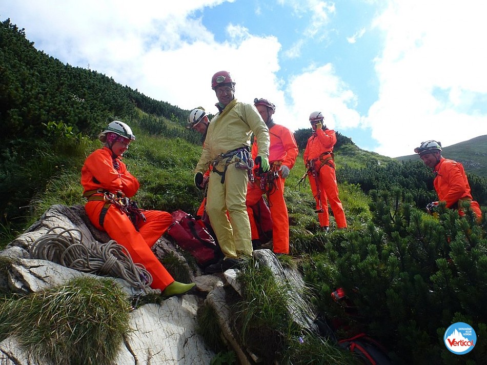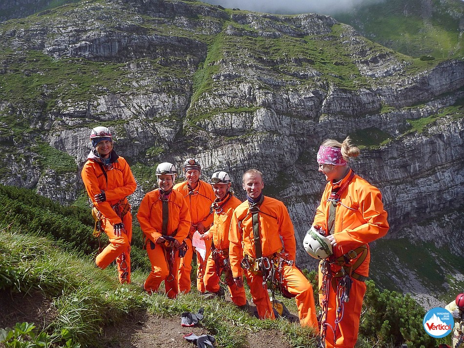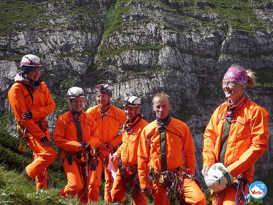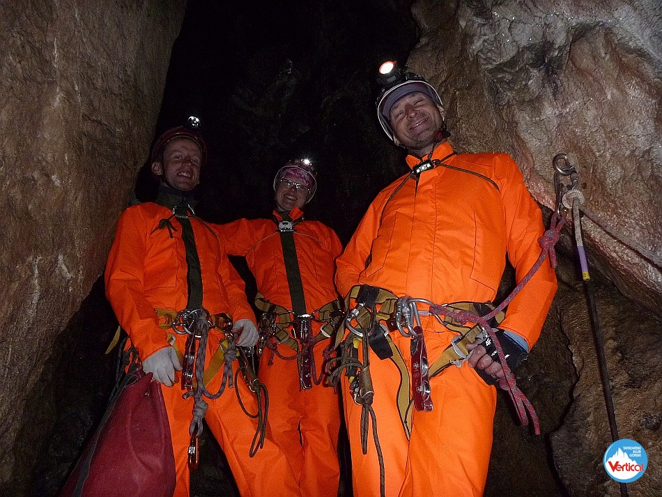 JASKINIA POD WANTĄ Wejście kursowe do jaskini w składzie: Paweł Orawiec, Leszek Pieniążek i szkoleni: Kasia Burdzy, Marzena Migas, Aneta Ławnik, Maciek Gąsienica-Makowski, Witek Rasztabiga, Adam Wojdyła. Foto: Paweł Orawiec i Leszek Pieniążek. Dodano: 17 sierpnia 2014 r.