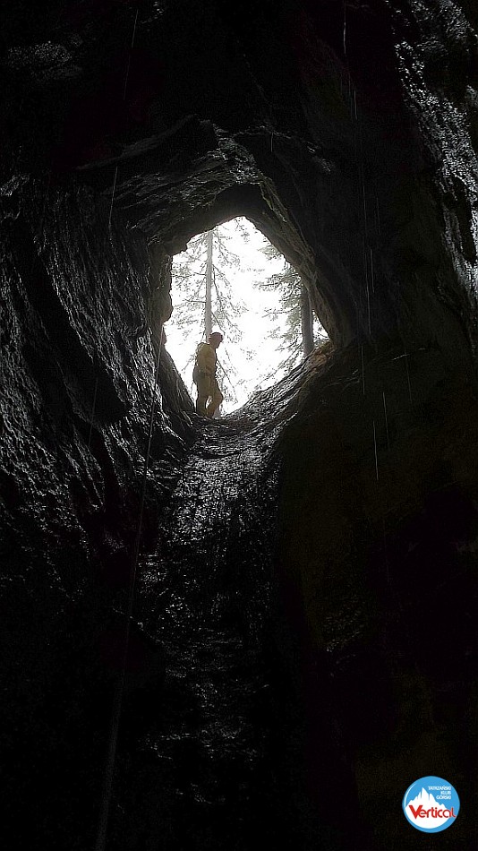 JASKINIA CZARNA Głowny otwór - Komin Smoluchowskiego. W wejsciu kursowym uczestniczyli: Grzesiek Albrzykowski i Leszek Pieniążek oraz szkolący się: Marzena Migas, Aneta Ławnik, Maciek Gąsienica-Makowski, Witek Rasztabiga Fot. Witek Rasztabiga Dodano: 24 sierpnia 2014 r.
