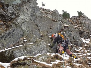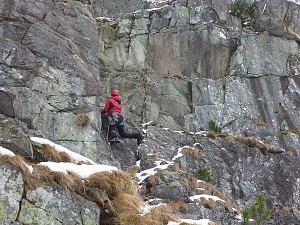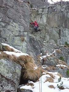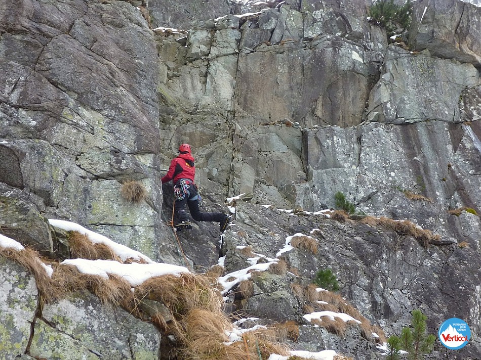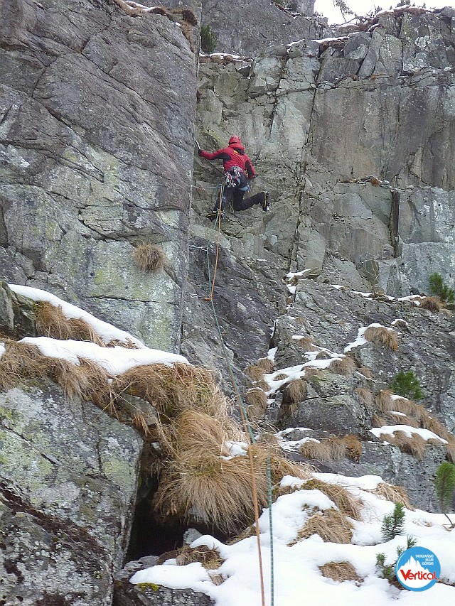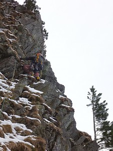 Ponieważ pod ścianę dotarliśmy mniej więcej o 11 więc co było robić - za cel wspinaczki wybraliśmy drogę co się zowie "Bladym Świtem". Trudności mikstowe M6+/ M7- Udało się OS