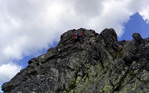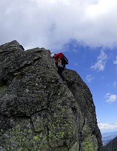 28.VII.2015 - Szybki, przedpołudniowy wypad na Kościelce. Miało być nieco inaczej ale nocna ulewa i wszechobecna mokrość ścian pokrzyżowały plany. Nie mając innej opcji, przeszliśmy grań Zadniego Kościelca i drogę Gnojka na zachodniej ścianie Kościelca. Całość w pięknym stylu prowadziła ładniejsza część zespołu ;-)