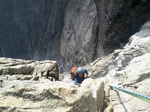 Kieżmarski Szczyt Małe odwiedziny na pięknej ścianie, na szczyt weszliśmy kombinacja dwóch dróg. Wielkie Zacięcie do rampy a dalej do szczytu Birkenmajer. Adam Wojdyła i Magda Sitarz Dodano: 13 sierpnia 2015 r.