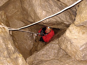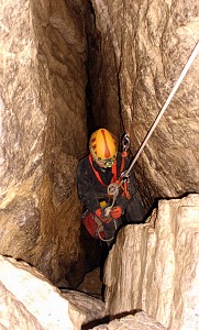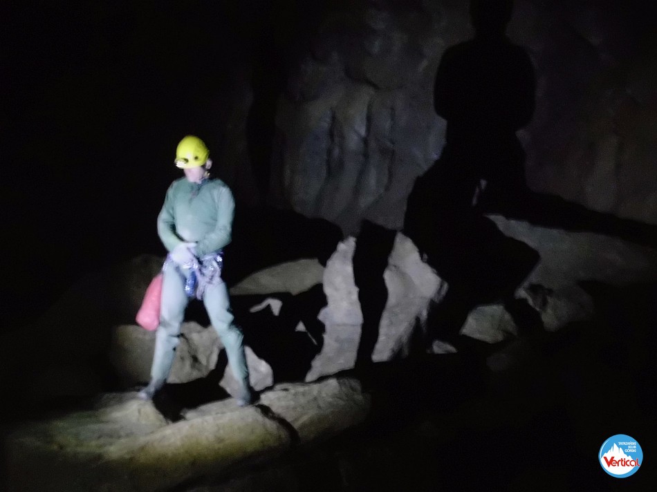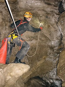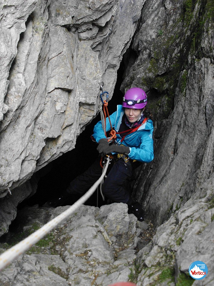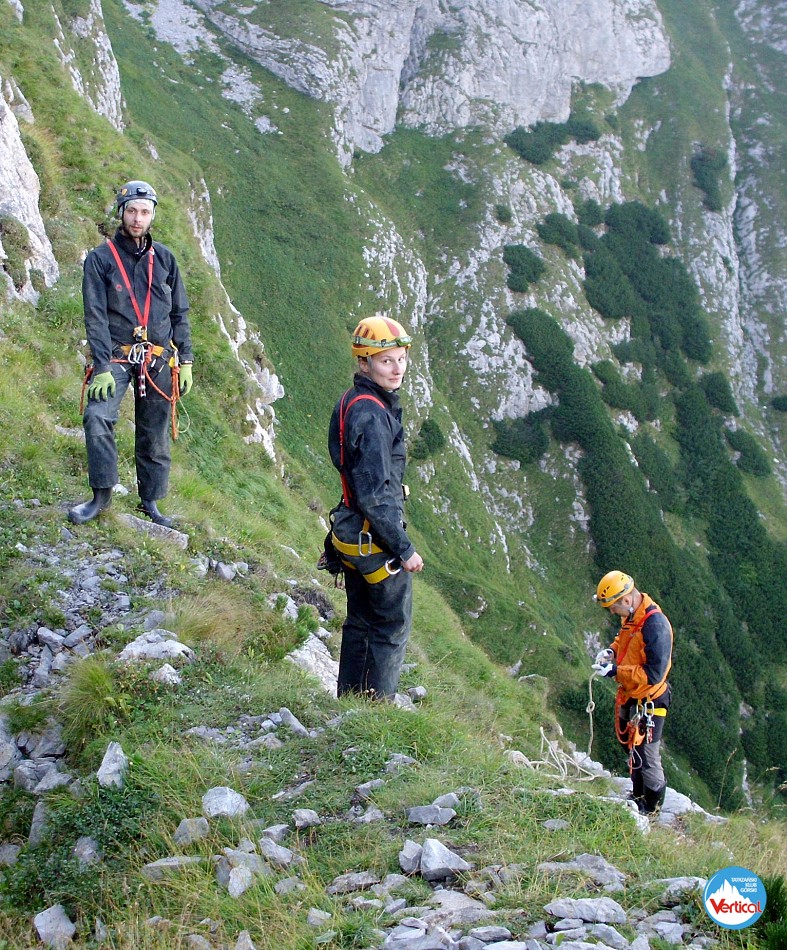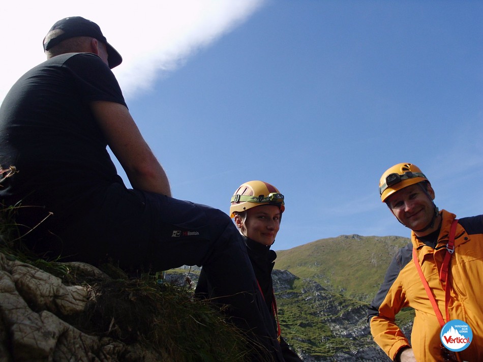 Zajęcia kursu taternictwa jaskiniowego w Jaskini Pod Wantą (Litworowy Dzwon) i wycieczka topograficzna przez Kotliny do otworów wielkich jaskiń Doliny Małej Łąki.