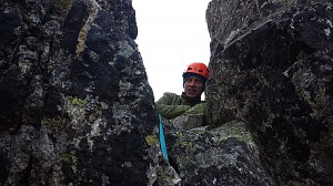 Po zdobyciu Kapucyna stwierdziliśmy, że przejdziemy się jeszcze na Lale kominkiem od strony Mokrej Wanty... wyglądał tak przyjaźnie, że nawet nie zmieniłam butów... a tu proszę ... zaskoczenie... trudności może i nie było bo to (III) ale po psychice trochę poszło... i prowadził Adaś, a ja z Pawłem szliśmy za nim :)