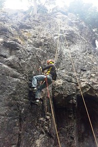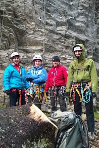 Przedstawiamy naszych nowych kursantów: Basia, Monika, Adam, Maciej i Stanisław. Póki co, dzielnie trenują techniki jaskiniowe w skałach - kilka zajęć już mają za sobą. Mamy nadzieję, że już niedługo uda im się zejść pod ziemię, chociaż na razie wyglądają dosyć niepozornie ;-).
