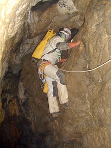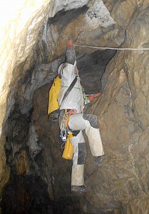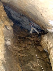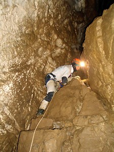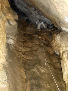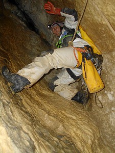 Udało się wejść do jaskini jako pierwsza grupa w tym dniu, stąd wszystkie kominy do załojenia były nasze. Pomimo, że była to tak na prawdę pierwsza jaskina dla zespołu, dotarliśmy do Chatki w bardzo przyzwoitym czasie; a w nagrodę powrót - już tylko zjazdami do poziomu otworu.