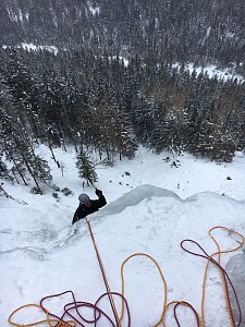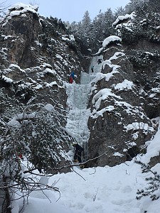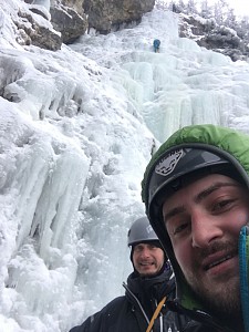 Sobota 24.02.2018 Kaskady (WI3+) temp przyjemna -10.. lód dołem przedziabany wyżej nieco plastyczny wręcz rozmokły i cieknący.