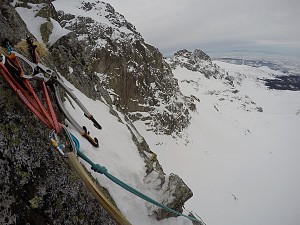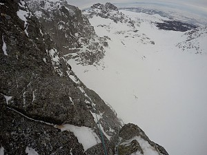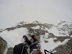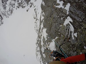 Koszmarne śniegi na podejściu z Koziej Dol. pod ścianę ale warunki wspinaczkowe niezłe. Było niestety wietrznie i zadymkowo, co nie dodawało odwagi :)