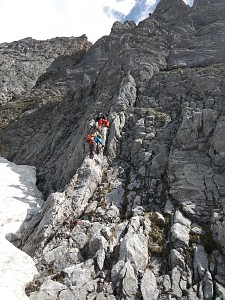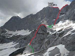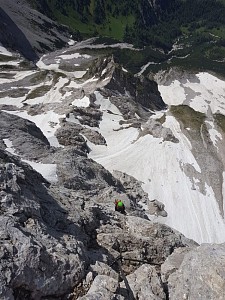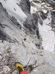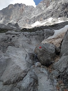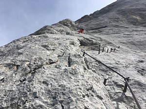 Ferraty na Dachsteinie zaliczyliśmy dwukrotnie. 05.06.2018 w pełnym składzie Leszek, Przemysław, Bartosz przeszliśmy jedynie dolną część, czyli ferratę Anna 150m długości o trudności D. Na więcej w tym dniu nie starczyło sił oraz czasu. W dniu 08.06.2018 całą superferratę tj. Anna + Johann + Hoher Dachstein przeszli Przemek i Bartek.