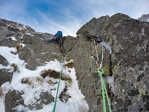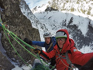 Niżnia Królewska Baszta Adam Wojdyła i Paweł Orawiec - zdjęcia ze wspinaczkiNiżnia Królewska Baszta - Dolina Staroleśna droga: Piranha M6+ OS 31.01.2019 Dodano: 31 stycznia 2019 r.