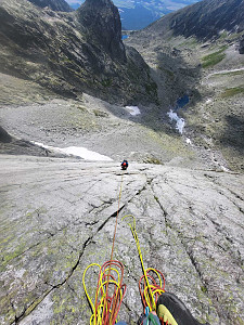 Droga ładna, lita i pewna asekuracja, na większości stanowisk dwie plakietki. Droga napewno godna polecania, ładna, logiczna linia i łatwa jak na VI+;)