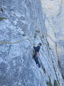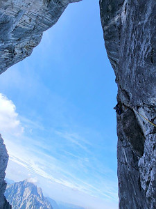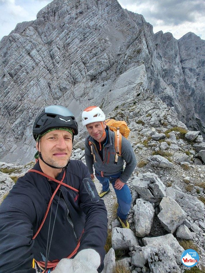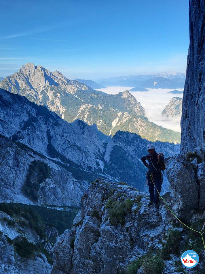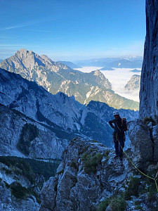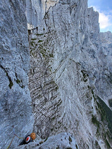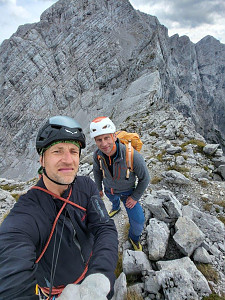 Wspięliśmy z Adamemjednym z klasyków a dokładniej północno-zachodnim filarem szczytu Roßkuppe VI+ OS, 630m. I w sumie może warto dodać, że wspinanie to jedno ale powrót do auta 1600 m niżej, częściowo w deszczu mega eksponowaną percią, tzw. Ścieżką Piotra, to już zupełnie osobna, dla nas dosyć wytężająca przygoda.