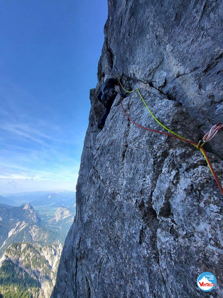 Park narodowy Gesäuse czyli jesteśmy w Austrii, konkretnie w Styrii. Dużo tu takich jakby Kominiarskich Wierchów, Świstówek Niżnich bądź Wielkich... no właśnie wszystko jakby większe. To przez te głęboko wcięte doliny bo góry podobnej wysokości co Tatry. No a tam gdzie wspinaliśmy to jak nic przypomina Kazalnicę Miętusią, Ratusze. Twardą Ścianę itd. Piony straszne.