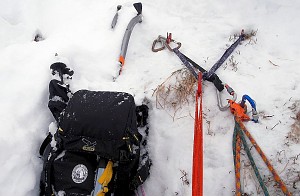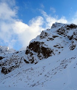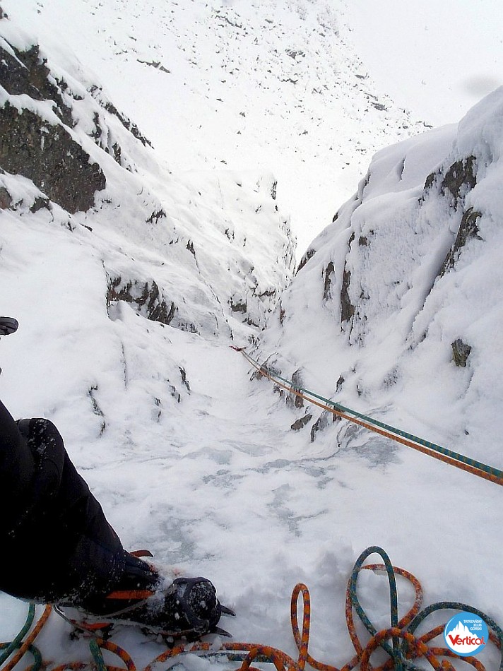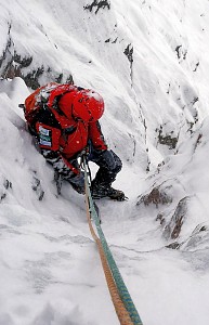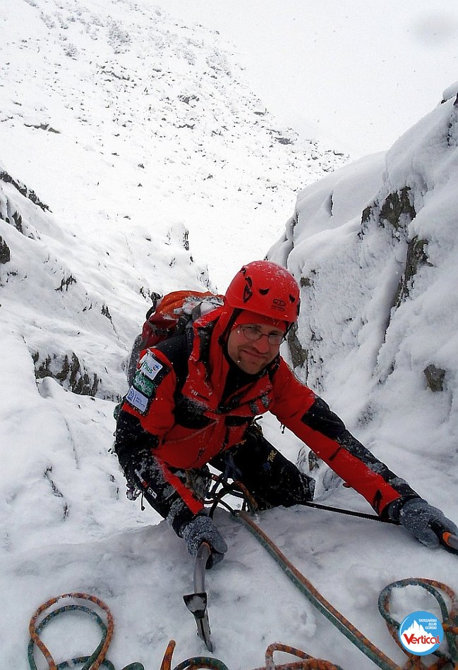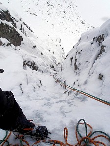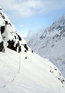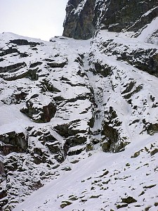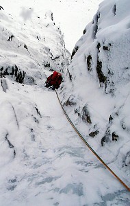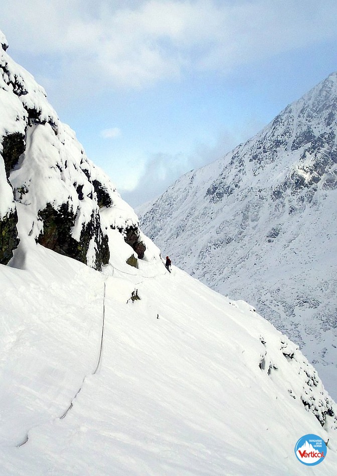 Krótkie wspinanko na Hali. Komin planowaliśmy przejść tylko w górę a trzeba było również nim zjeżdżać. Niestety 10 - 15 cm. świeżo spadłego śniegu okazało się barierą nie do pokonania. I tak po prawie dwóch godzinach błąkania się po Kotle Kościelcowym uznaliśmy zjazdy Kominem za jedyną bezpieczną drogę. - wspinali się : P. Krzan i P. Orawiec.