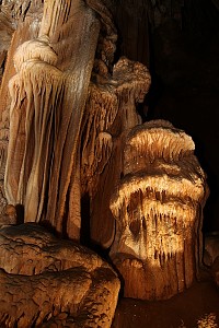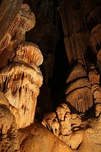 Wapienny płaskowyż wznoszący się wokół słynnego PRZEŁOMU RZEKI ARDECHE (płd część regionu doliny Rodanu i Alp,Francja) jest podziurawiony jaskiniami i kryje w sobie niezwykłe bogactwo podziemnego świata... Najbardziej znane jaskinie tego zakątka to Grotte de la Madeleine oraz Aven d'Orgnac,są najeżone ogromnymi,licznymi stalaktytami i stalagmitami. To jaskinie turystyczne, wyróżniające się jednak bardzo efektownymi naciekami, zabarwionymi na czerwono tlenkami żelaza i migoczącymi kryształkami.