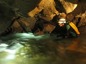 Widoczne z drogi w Dolinie Kościeliskiej otwory jaskini to podziemny przepływ Potoku Kościeliskiego i wody z Wąwozu Krakowa. Na zdjęciach ukazała sie świtezianka zamiast legendarnych śpiących rycerzy - chyba jednak śpią pod Giewontem.