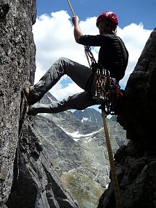 Tego dnia działaliśmy na dwa zespoły. Bogdan i Adam wybrali się na Chmielowskiego a Marcin z Pawłem przeszli drogą Stanisławskiego Obydwie linie są piękne. To perełki! Z resztą cała, południowa ściana Wołowej oferuje wspinanie o wyjątkowych walorach estetycznych.